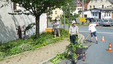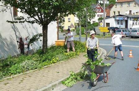 Der Obst- und Gartenbauverein der kleinen Bergstadt schritt zusammen mit dem Landschaftsgärtner Jürgen Pflaum zur Tat. Dabei ließen sich der Fachmann und seine fünf Helfer um Vorsitzenden Gerhard Schicker auch nicht von den tropischen Temperaturen abschrecken.