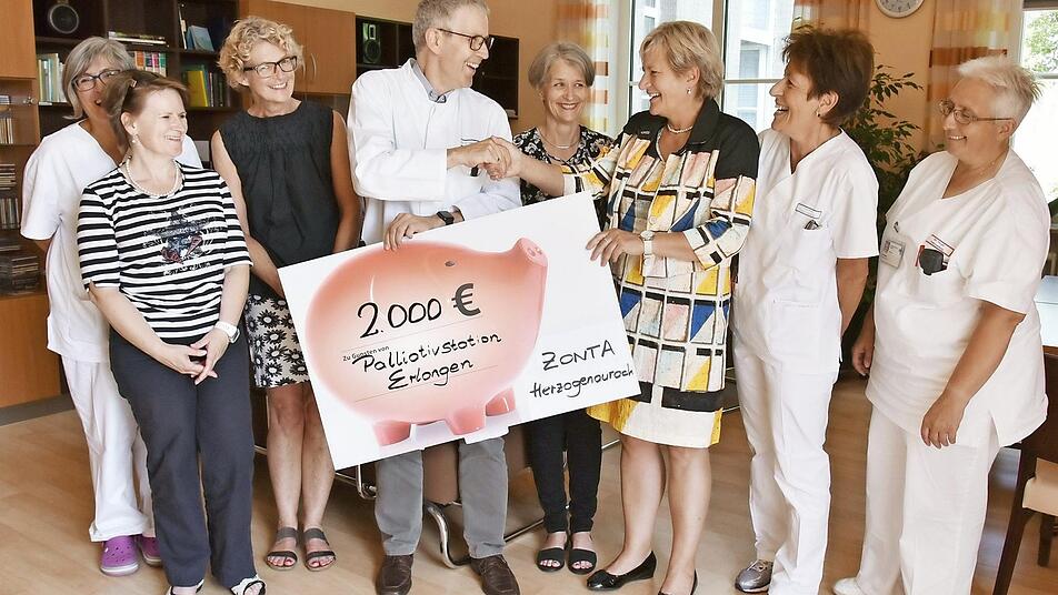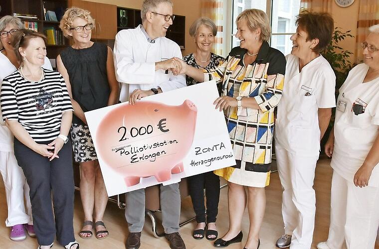 Herzogenaurach Benefizveranstaltungen und unterstützt mit den Erlösen regionale und internationale Projekte. Bei einem Konzert im März 2017 kamen durch Eintrittsgelder und Spenden der Besucher 2000 Euro zusammen, die nun dem Förderverein Palliativmedizin und somit Patienten der Palliativmedizinischen Abteilung des Universitätsklinikums Erlangen unmittelbar zugutekommen. Überreicht wurde der Spendenscheck jetzt von fünf Mitgliedern des Zonta-Clubs.