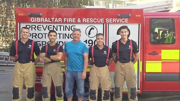 Leserfoto "Bei Euch stand letzte Zeit viel über die Feuerwehr in der Zeitung", schreibt der Heßdorfer Erich Biermann. Der aktive Ehrenamtler in der Freiwilligen Feuerwehr Heßdorf nutzte die Gelegenheit, bei einer Spanienreise das nahe Gibraltar zu besuchen. Die sieben Quadratkilometer waren schnell erforscht, und es ergab sich die Gelegenheit, die dortige Feuerwehr zu besuchen. Beeindruckend waren die Zahlen: 3000 Einsätze im Jahr, zwei Löschflugzeuge im Fahrzeugpark, rund 30 000 Bewohner, die geschützt werden. Foto: privat
