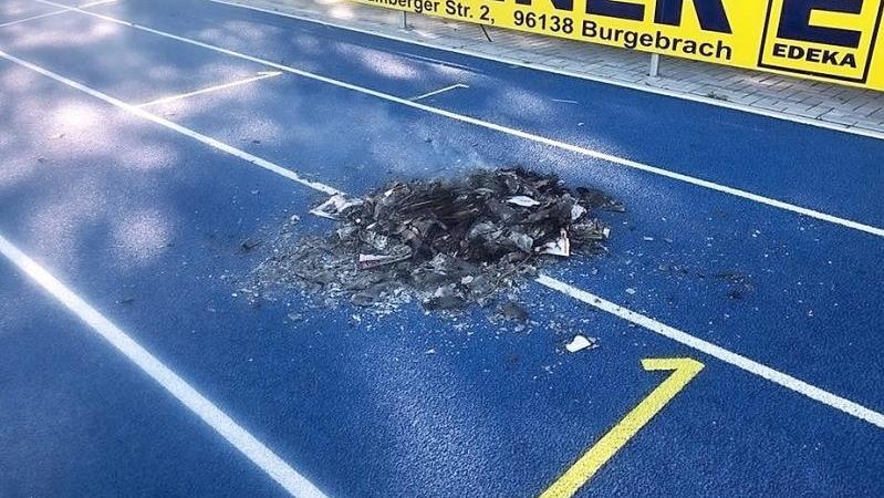 Bürgermeister Johannes Maciejonczyk ist stinksauer. Unbekannte Zündler haben in der Nacht zum Dienstag ein Feuer am Sportplatz gelegt - mitten auf der neuen Tartanbahn. Die brennenden Prospekte haben nach ersten Einschätzungen des Gemeindechefs irreparable Schäden hinterlassen. Der Markt bittet nun um Hinweise von Zeugen.