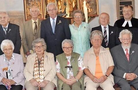 Sie feierten Eiserne Konfirmation (65 Jahre): Hans Fleischmann, Gerda Freimuth, Reinhard Kalb, Hannelore Kessel, Ilse Kestel, Walter Schmidt, Werner Schmidt, Kurt Wagner. Zur Gnadenkonfirmation traten sie in Erinnerung an ihr erstes Abendmahl vor 70 Jahren vor den Altar: Günter Baum, Irma Betz, Walter Kristein, Waltraud Kraus, Herbert Schmitt, Herford Schneider, Irmgard Schwarz.
