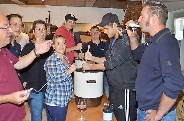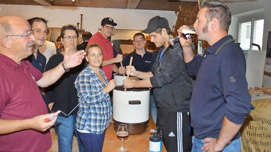bier Die Burschen und Mädchen der Kirchweihgesellschaft Weißenbrunn brauen ihren eigenen Kerwa-Trunk bei einem Lehrgang in der Hobbybrauerakademie.