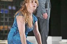 Im Zentrum: Anne Rieckhof als Christine. Die Mecklenburg stammende Schauspielerin, die in den vergangenen Spielzeiten am Südthüringischen Staatstheater Meiningen engagiert war, spielt anstelle von Philippine Pachl eine junge Frau, die im vorangegangenen Sommer ein Verhältnis mit Hoteldirektor Strasser hatte und schwanger wurde.