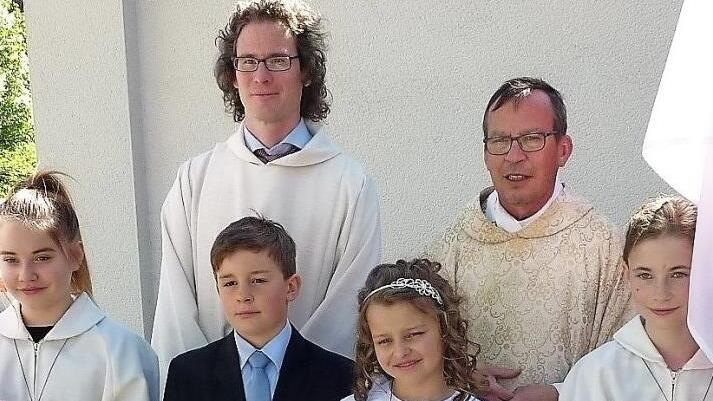 In der Pfarrgemeinde St. Wolfgang gingen mit Sophia Schramm und Benedikt Schülner ein Mädchen und ein Junge erstmals zum Tisch des Herrn. Die Erste Heilige Kommunion spendete Pfarrer Hans-Michael Dinkel, die Ansprache hielt Gemeindereferent Matthias Beck. Der Chor "El Shalom" unter der Leitung von Sven Zimmermann umrahmte den Gottesdienst. Die Orgel spielte Sebastian Rauer. Foto: G. Fleischmann
