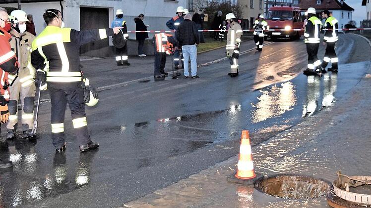 Kleinere Ortswehren werden nur ganz selten gefordert - und dann gibt es binnen kürzester Zeit zwei Einsätze. So geschehen am Freitag in Giechkröttendorf und Isling. War es zunächst ein Fahrzeugbrand, der rasch gelöscht werden konnte, so mussten die Feuerwehrleute aus Isling, Mönchkröttendorf und Klosterlangheim binnen einer Stunde zum zweiten Mal ausrücken. Diesmal war es ein Wasserrohrbruch. Fast wie ein Ölquelle sprudelte dabei das Trinkwasser auf dem Kohlbauerplatz aus einer Pflasterfläche, so dass diese bis zum Eintreffen der Mitarbeiter des städtischen Wasserwerkes aus Sicherheitsgründen abgesperrt worden war, um das Abfließen des Wassers in die geöffneten Kanalschächte zu ermöglichen. Foto: Dieter Radziej