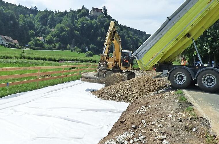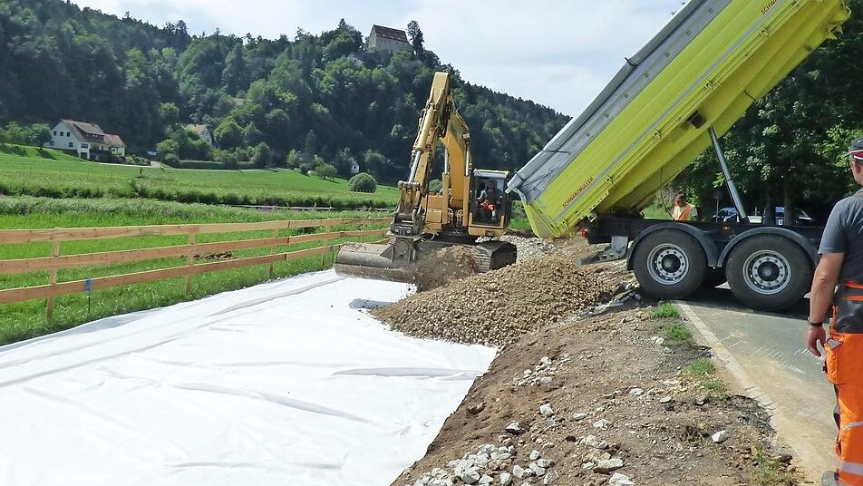 Der Bau des Radwegs ist bereits länger im Gang. Der Grund, warum die wichtige Verkehrsverbindung nun für zwei Monate komplett gesperrt werden muss, sind vier auszubauende Engstellen entlang der Wiesent, in deren Bereich der Radweg "angehoben" werden muss.