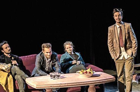 Im munteren Wechselspiel zwischen Fakten und Fiktion stellen sich die neuen Schauspieler vor: Solvejg Schomers, Valentin Kleinschmidt und Thomas Kaschel sitzen leibhaftig auf der Bühne der Reithalle, Alexandra Weis flimmert dann mit einem fiktiven YouTube-Video über die Leinwand.