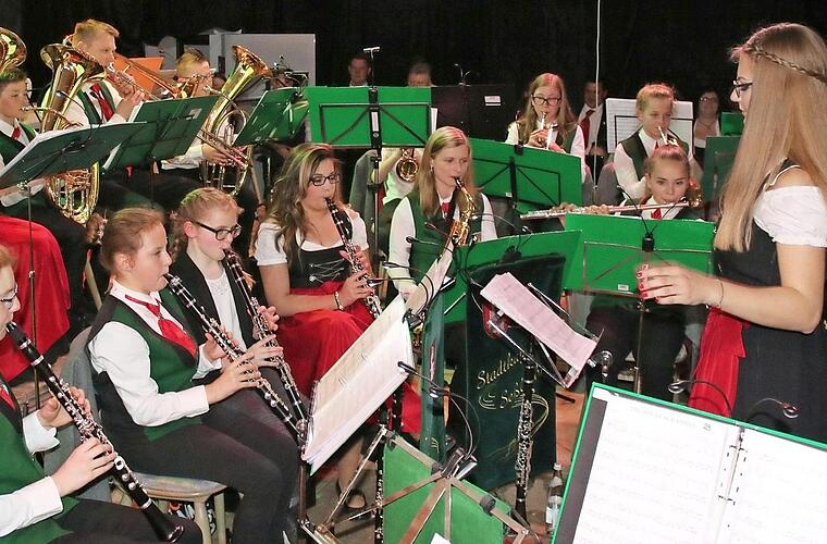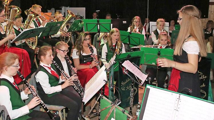 Kurz vor der Pause gehörte die Bühne allein den Jungmusikern: Hannes Bock (Trompete) aus Heilgersdorf, Lilly Müller (Klarinette) aus Hattersdorf und Max Schoregge (Bariton) aus Hafenpreppach präsentierten sich ebenso wie Jung-Dirigentin Nicole Bohl erstmals dem Publikum. Ellena Bartsch, Lena Engelhardt, Benedikt Heimstädt und Marie Schiegg, die nun den ganzen Abend mit der großen Kapelle musizieren durften, unterstützten sie bei der Premiere. Ein dickes Lob vom musikalischen Leiter Michael Bauer gab es für Engelhardt ebenso wie für Agnetha Merz, Marie Schiegg, Annegret Vogt und Philipp Stark, die alle ihre D1-Prüfung "mit Bravour" bestanden hatten.