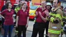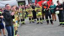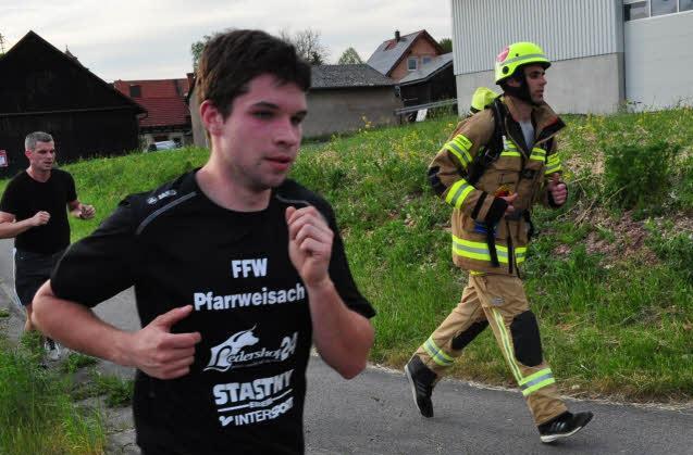 Auf einer Deutschlandtour der Feuerwehr zugunsten der Deutschen Krebshilfe machten die Läufer Station in Pfarrweisach. Der Empfang war großartig.
