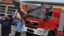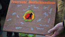 Pfarrweisach, als dort der Tross der Feuerwehr-Deutschlandtour Halt machte. Ziel dieser Initiative ist es, für die Deutsche Krebshilfe zu sammeln. Organisator Hanjo Kaminski (Nordhorn) strebt eine Summe von 20 000 Euro an. Schirmherr des Projekts ist die Handball-Trainerlegende Heiner Brand.