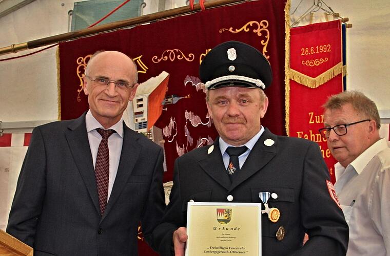 "125 Jahre Freiwillige Feuerwehr Losbergsgereuth-Ottneuses sind ein stolzer Grund zum Feiern", sagte Landrat Wilhelm Schneider. Der Gemeindefeuerwehrtag, verbunden mit der Verleihung des Feuerwehrehrenzeichens des Bayerischen Innenministers, biete ihm Gelegenheit, den Feuerwehrleuten für ihr unermüdliches Engagement zu danken.