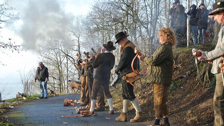 60 Mann halten auf dem Plateau den Atem an. Ruhe. Kommando! Schon kracht es ohrenbetäubend, das Grollen rollt hinüber in den Steigerwald, und der Schalldruck haut einem direkt die Daunenfedern aus den Anorak: Das Neujahrsschießen der Böllerschützen auf dem Zeiler Käppele bietet Auge und Ohr einiges, kein Wunder, dass sich da viele Zuschauer eingefunden haben. Schwarzpulver explodiert mit Wahnsinns-Krawumm und Rauch und mit allen Sinnen wird schlagartig klar, was die Akteure so fasziniert.