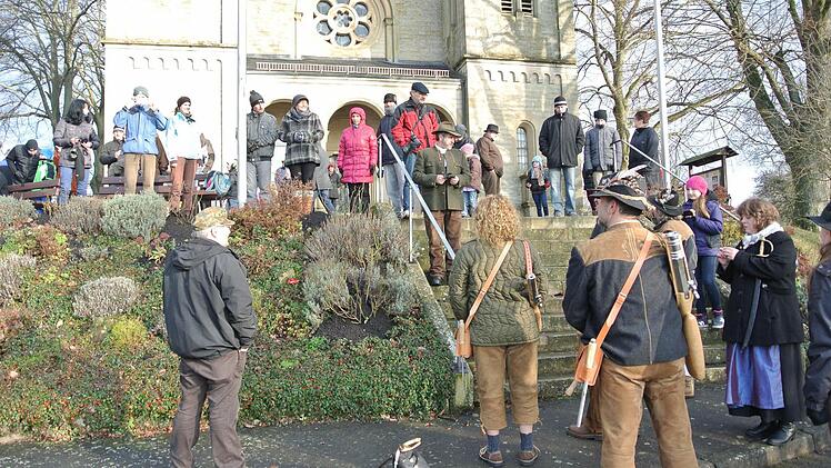 Ja! Und so sind sie glücklich, die sich der Brauchtumspflege verschrieben haben und sich seit vier Jahren oben am Käppele zu Neujahr treffen - heuer bei Kaiserwetter.