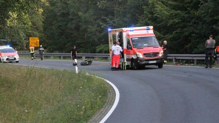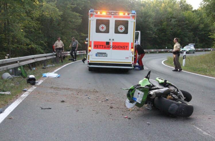 Der Fahrer wurde über die Leitplanke und eine steile Böschung hinab einige Meter in den angrenzenden Wald geschleudert. Der 22-jährige Yamahafahrer, der etwa 100 Meter hinter dem Verunfallten fuhr, kümmerte sich sofort um seinen verunglückten Motorradfreund und verständigte Rettungsdienst und die Polizei. Zum Einsatz kam auch ein ADAC-Rettungshubschrauber, der nahe der Unfallstelle landete. Die Rettung des Motorradfahrers gestaltete sich aufgrund der Geländegegebenheit etwas schwierig, wurde aber von der Feuerwehr und den Rettungsdienstkräften in relativ kurzer Zeit bewältigt.