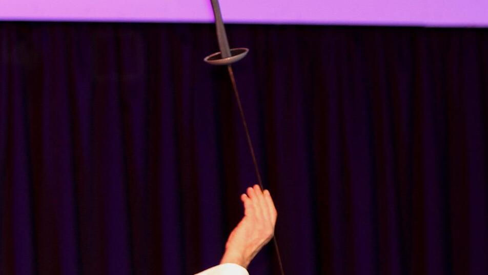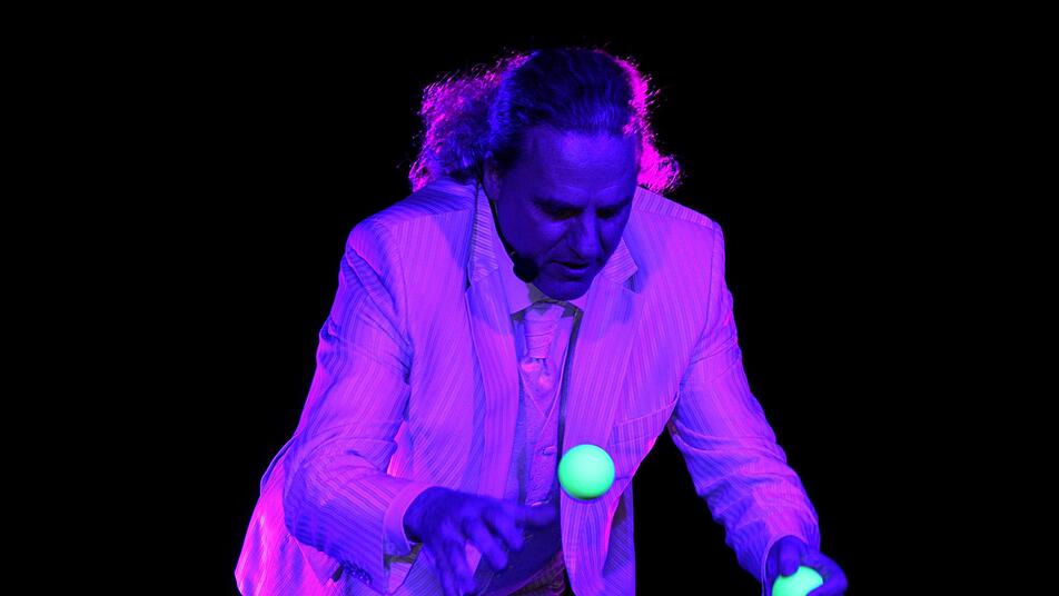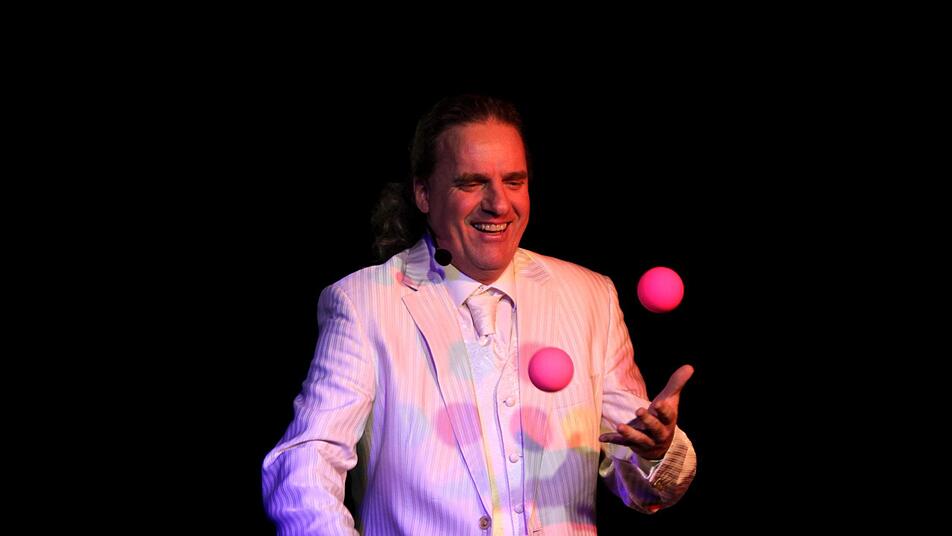 Der Abend stand ganz im Zeichen der Varietékunst durch "Dirk Denzer Performing Arts" und Dirk Denzer führte dabei kurzweilig, interessant und auf die Volkshochschule bezogen durch das Programm. Der "Keynote-Speaker" charakterisierte mit seiner Jonglage mit Bällen die VHS, in der viel koordiniert werden müsste, nicht die falschen Teilnehmer am falschen Kurs stehen dürfen und es auch den entsprechenden Rhythmus brauche. Auch Schnelligkeit sei gefragt und das konnte er am besten mit seinen Bällen zeigen.