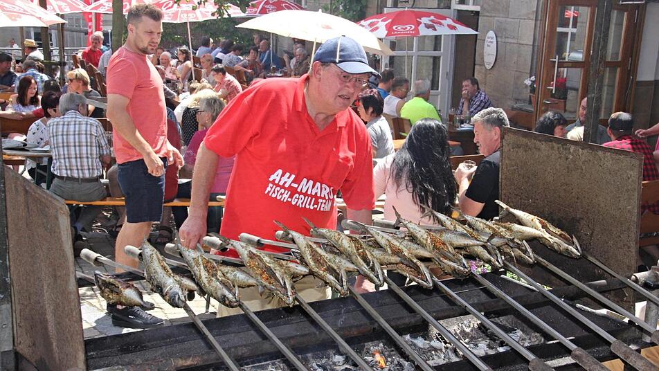 Begehrt war neben Bratwürsten vor allem der Steckerlfisch, der von den "Alten Herren" des SC Maroldsweisach angeboten wurde, und auch die Sau am Spieß fand Abnehmer.