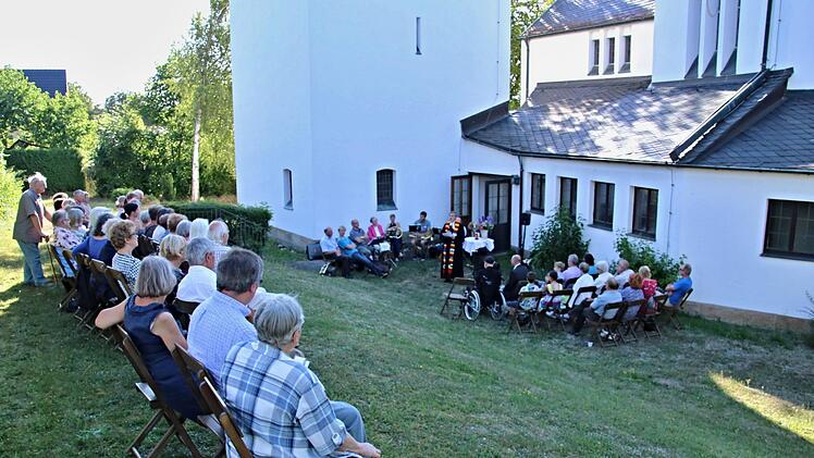 Ebern und Jesserndorf mit Pfarrer Bernd Grosser laden öfter zu "besonderen Gottesdiensten" ein. So auch am Samstagabend in der Christuskirche Ebern und hinter dem Gotteshaus unter dem blauen Abendhimmel im Freien.