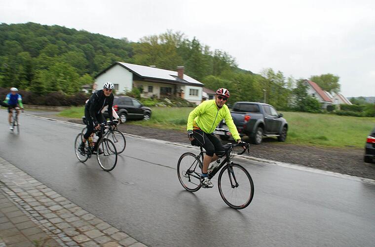 Der RSV Unterschleichach und die AOK hatten eingeladen, den Steigerwald im Fahrradsattel zu erkunden. Die Teilnehmer hatten Spaß - trotz des Wetters und einiger Scherzbolde.