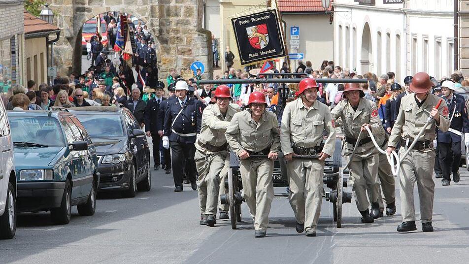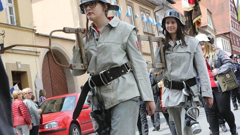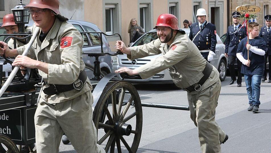 Höhepunkt des 150. Jubiläums der Feuerwehr in Ebern ist ein historischer Umzug. Viele uralte Geräte und Fahrzeuge sind dabei in der Altstadt zu sehen.
