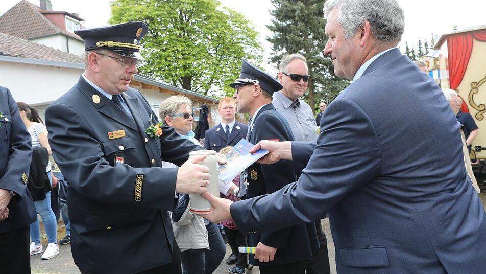 Landrat Wilhelm Schneider (CSU), Schirmherr des Jubiläumsfestes, zeigte sich von dem "überwältigenden Festzug" begeistert, nahm das gute Wetter "auf seine Kappe" und hatte die Hoffnung, dass die Ebener mit ihm als Schirmherr zufrieden sind. "150 Jahre Freiwillige Feuerwehr Ebern, das sind 150 Jahre Sicherheit, Kameradschaft und bürgerschaftliches Engagement in der zweitgrößten Kommune unseres Landkreises", so der Landrat. Durch ihren Dienst über 150 Jahre habe die Feuerwehr Ebern einen unschätzbaren Dienst für die Allgemeinheit geleistet. "Solch freiwilliger Einsatz kann nicht verordnet werden, er entsteht aus ganz persönlicher Motivation", sagte Schneider.