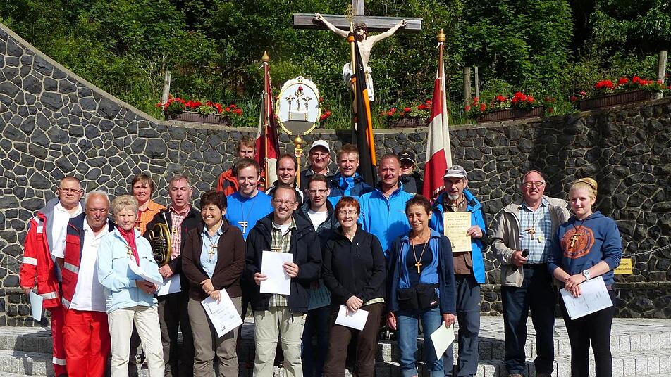 Chefsanitäter Konrad Appel, Unterpreppach, Matthias Becht, und Musiker Markus Borzel, beide Vorbach , und Fahnenträger Anton Gerstenkorn wurden für 15-malige Teilnahme gewürdigt, Resi Huppmann, Bramberg, für 20-malige Teilnahme. Eine besondere Ehrung erhielt Alfred Appel anlässlich seiner 25. Teilnahme an der Eberner Kreuzbergwallfahrt, der sich, laut Kaspar, unter anderem als Mitbegründer und Träger der Kolpingfahne in all den Jahren verdient gemacht hat.