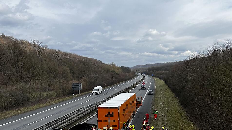Sie fuhr nahezu ungebremst auf das Heck des Gespanns auf. Die Frau wurde bei dem Verkehrsunfall im Fahrzeug eingeklemmt und musste durch die eingesetzten Feuerwehren aus ihrem Fahrzeug befreit werden. Die Schwerverletzte wurde durch einen Rettungshubschrauber in eine Würzburger Spezialklinik gebracht.