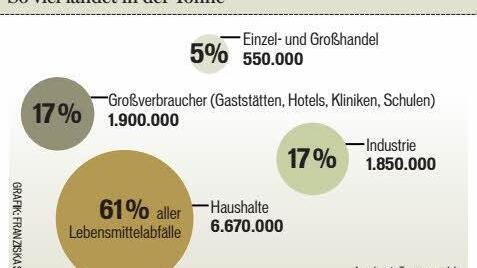 Die meisten Lebensmittelabfälle werden nicht von den Supermärkten "produziert", sondern von den Privathaushalten. Entsprechend einer Studie des Bundesernährungsministeriums im Jahr 2012 werden von den Privathaushalten bundesweit jedes Jahr 6,7 Millionen Tonnen Lebensmittel entsorgt: "Im Schnitt wirft jeder Bundesbürger pro Jahr 81,6 Kilogramm weg. 65 Prozent dieser Lebensmittelabfälle wären völlig oder zumindest teilweise vermeidbar.