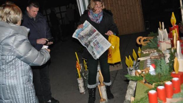 "Nehm ich den, oder nicht?" So, wie es der jungen Frau auf einem unserer Bilder offensichtlich geht, haben viele Besucher am Samstagnachmittag und -abend beim Adventsmarkt in Rabelsdorf (Gemeinde Pfarrweisach) mit einer Entscheidung gerungen.
