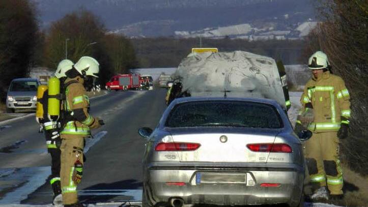 Die Floriansjünger aus Haßfurt, Sylbach, Unter- und Oberhohenried waren mit rund 20 Einsatzkräften schnell zu Stelle und löschten das Feuer. Erschwert wurde der Einsatz etwas, weil es sich um einen Wagen mit Flüssiggasantrieb handelte.