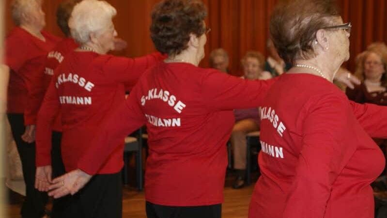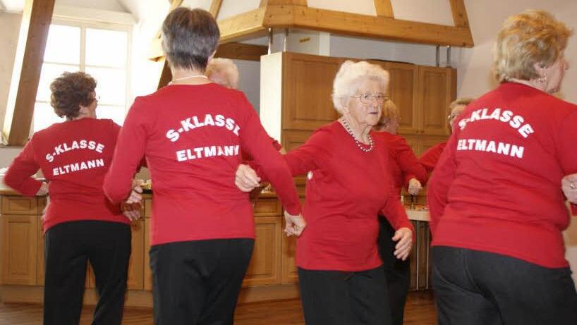 "Du hältst die Eltmanner Damen fit", dankte Bürgermeister Michael Ziegler der heutigen Übungsleiterin Ellen Tonne. "S-Klasse" prangt auf den T-Shirts der Gymnastikdamen. Dazu erklärte der Bürgermeister, dass die S-Klasse der Automarke mit dem Stern die teuerste, am besten ausgestattete und hochwertigste Baureihe sei.