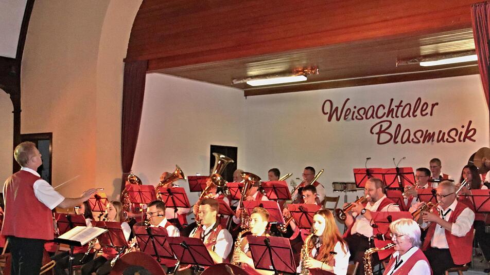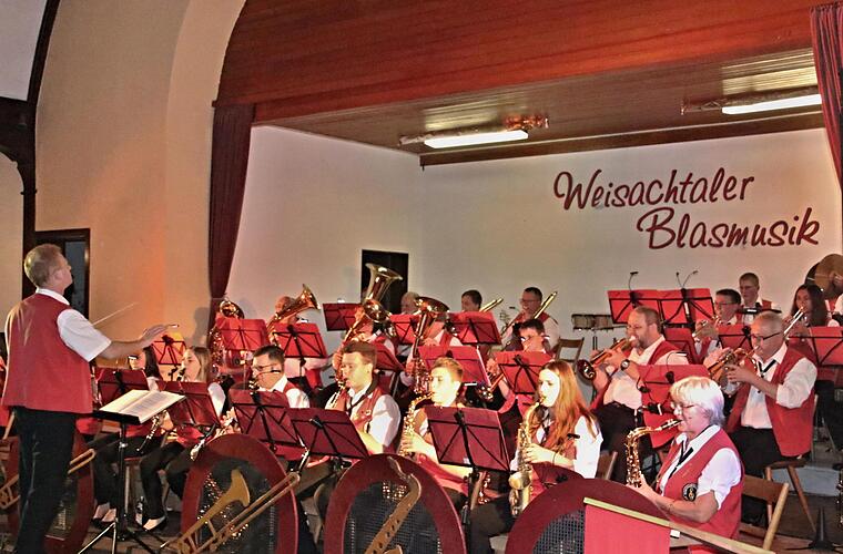 Die Gastgeber der Weisachtaler Blasmusik mit Dimitry Braudo am Taktstock zeigten, dass sie sich schon richtig auf ihr Jubiläum vorbereitet haben. Foto: Helmut Will