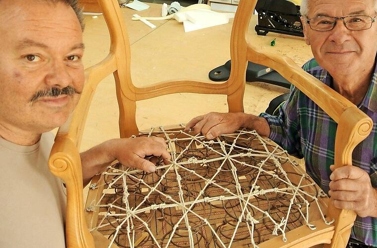 Drei Generationen erfüllen bei Sauerschells die Oberschwappacher Firmenräume mit Leben. Senior Ernst beherrscht die Kunst des Polsterns von der Pike auf.