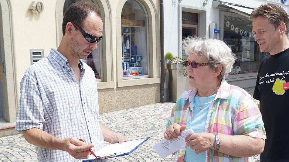 Die Gewerkschaft Verdi macht mit einem Aktionsstand in Haßfurt aus soziale Ungerechtigkeiten aufmerksam und sammelt Unterschriften.