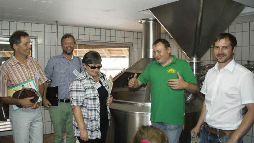 Viel wird hier wie in Fatschenbrunn in Eigenleistung erledigt - nicht nur Gestaltungsmaßnahmen, sondern auch dauerhafte Pflege, etwa des Dorfplatzes. Der zweite Kommunikationspunkt gleich nebenan war das Gasthaus "Zum grünen Baum", wo Michael Bayer in seiner Küche aus regionalen Produkten Gaumenfreuden zauberte, während sein Bruder Helmut die vermutlich kleinste Brauerei Unterfrankens betreibt. Knapp über 1000 Hektoliter - Landbier und "Knörzla" - werden hier eingebraut und direkt vertrieben. Unter anderem das besondere Theinheimer Wasser trage zu dem besonderen Aroma des Bieres bei, sagte der Brauer.