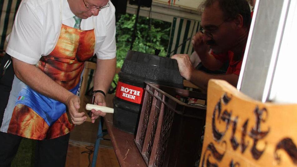 Zum Ritual des Festes gehört vielmehr der Bieranstich, den der Schirmherr, Thomas Limpert (CSU), mittels Handflächen-Schlag bravourös erledigte. Vor seiner ersten Festrede war er nach eigenem Bekunden "sehr nervös". Da halfen auch keine Brisen vorher.