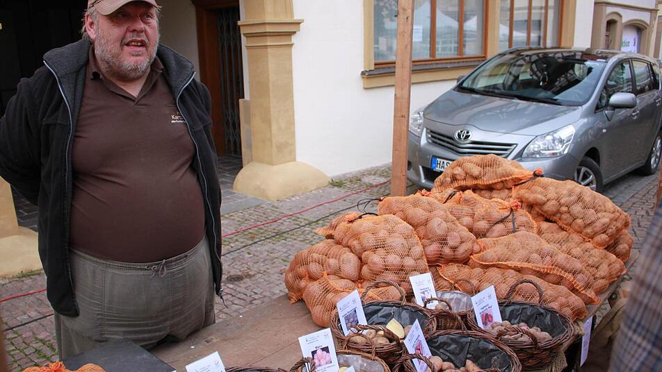 Dank des Apfelfestes und des wunderbaren goldenen Oktoberwetters war der kleine ,aber feine Oktobermarkt in Ebern wieder einmal gut besucht. Bürgermeister Jürgen Hennemann informierte sich bei der ersten offiziellen Eröffnung des 21. Apfelmarktes mit dazugehörigem Rundgang selbst, was in diesem Jahr alles geboten war. Besonders im Bereich um den Neptunsbrunnen und im Rathaus sammelten sich die Menschen. "Das Apfelfest ist fester Bestandteil des Oktobermarktes", freute sich der Bürgermeister und bedankte sich beim Bund Naturschutz, dafür mit dem Apfelfest eine feste Attraktion für diesen Markt geschaffen zu haben. "Sonst wäre dieser Markt sicher nicht mehr so belebt." Verwies er auf andere Märkte, die längst nicht so gut besucht würden.