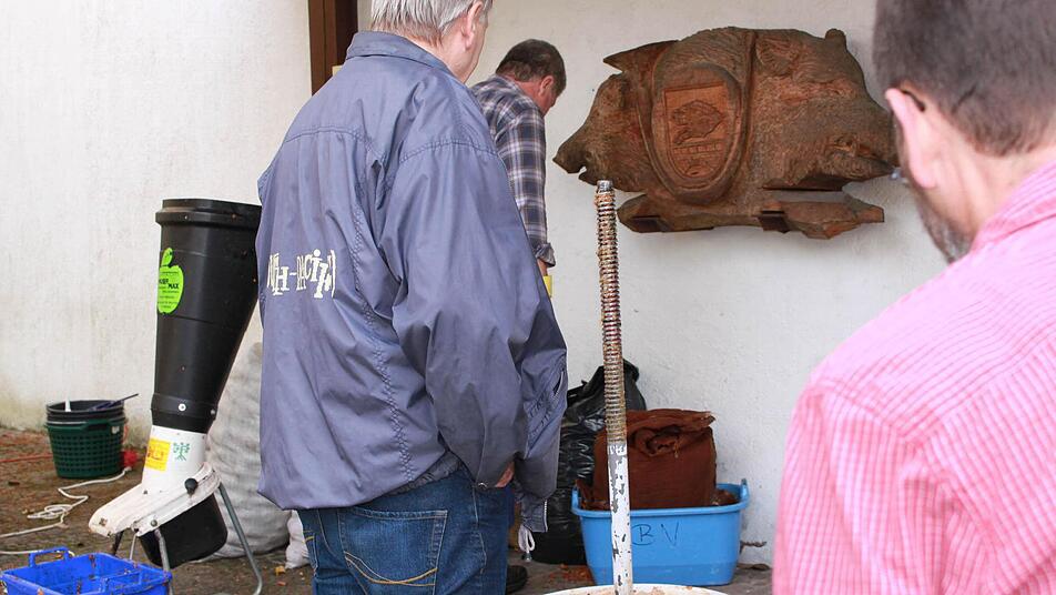 Allerdings sei dies mit hohen Kosten verbunden. Doch vielleicht, so stellte der Kreisfachberater in Aussicht, ergebe sich in absehbarer Zeit ein sogenanntes Leader-Projekt aus der Vielzahl der noch vorhandenen Streuobstbestände im Landkreis. Ein neues Projekt stellte auch Bürgermeister Jürgen Hennemann in Aussicht. Er wolle alle städtischen Apfelbäume erfassen und nutzen. "Wir haben für dieses Jahr ein Auszubildenden-Projekt ins Leben gerufen, bei dem aus den Äpfeln echter Eberner Apfelsaft werden soll", erzählte er auf dem Markt. Momentan ist das Projekt noch klein, um Erfahrungen zu sammeln. Es könnte in den nächsten Jahren aber - unter Mitwirkung der Schulen und Kindergärten - wachsen. "Den Apfelsaft würden dann auch die Schulen und Kindergärten bekommen", stellt sich Hennemann den gegenseitigen Nutzen vor. Und vielleicht könne dieses Projekt auch eine Art Leuchtturm-Projekt für den gesamten Landkreis oder sogar Basis für ein Leader-Projekt werden.