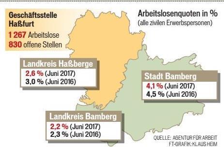 Auch im Juni hat sich der Arbeitsmarkt in der Region Main-Rhön und damit auch im Landkreis Haßberge "weiter positiv entwickelt", berichtete gestern die Arbeitsagentur. "Erfreulicherweise konnten im Juni mehr Menschen in Arbeit kommen als sich arbeitslos melden mussten", stellt Thomas Stelzer, der Vorsitzende der Geschäftsführung der Agentur für Arbeit Schweinfurt, fest.
