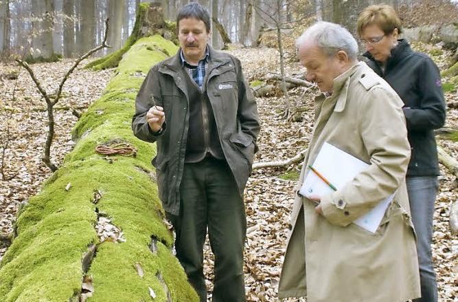 Mergner beschrieb, wie er versucht, einen intelligenten Weg zu suchen, der Artenvielfalt ebenso ihr Recht zu geben wie der wirtschaftlichen Nutzung. Schließlich müsse man auch Holz als Werkstoff und als Brennstoff zur Verfügung stellen. Natürlich sei die Artenvielfalt im Naturwaldreservat am größten. Doch mit einer großflächigen Bewirtschaftung auf hohem ökologischen Standard sei der Natur besser gedient. So werde der Klimawandel gerade in Franken die Trockenheit noch verstärken. Mit mehr Totholz könne der Boden mehr Wasser speichern und bekomme zudem wertvolle Nährstoffe zurück, erläuterte Ulrich Mergner.