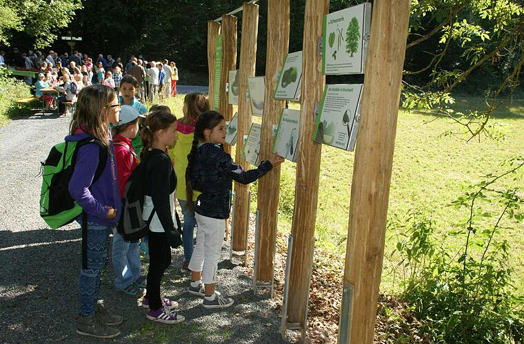 Bei Obersteinbach führt ein Rundkurs vor Augen, wie sich Tun und Lassen in der Forstwirtschaft auswirken können. Der Stationen-Weg wurde gestern eingeweiht. Am Sonntag sind viele Aktionen für Eltern mit Kindern geplant.