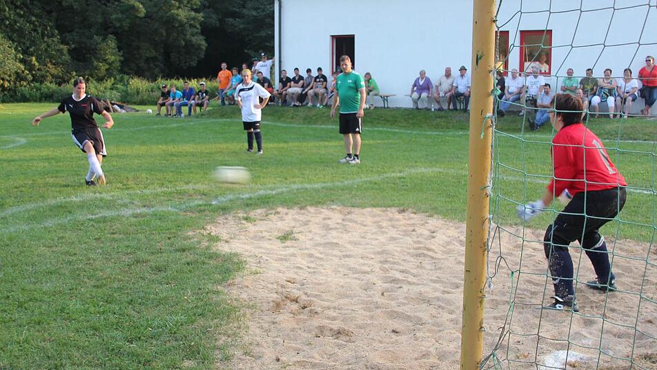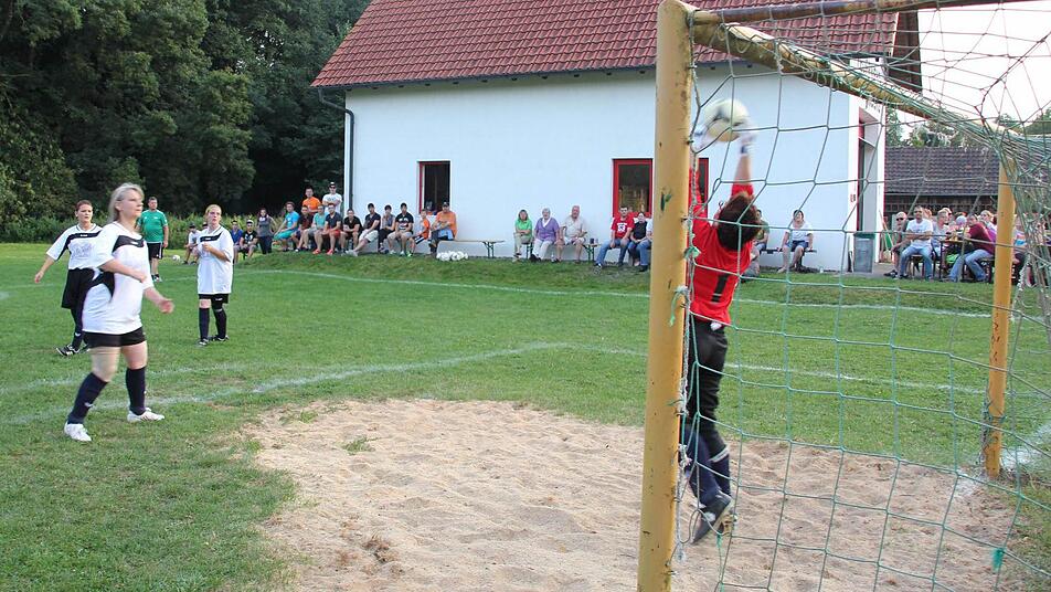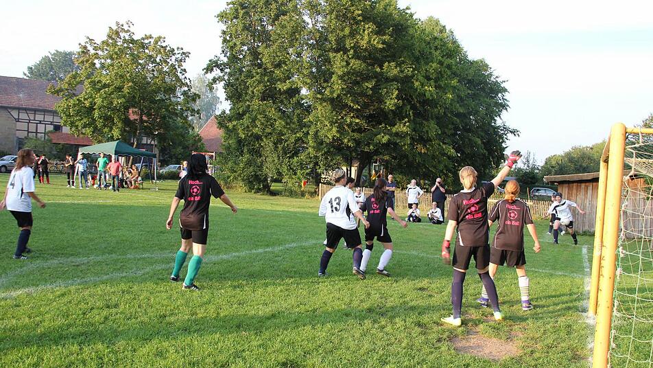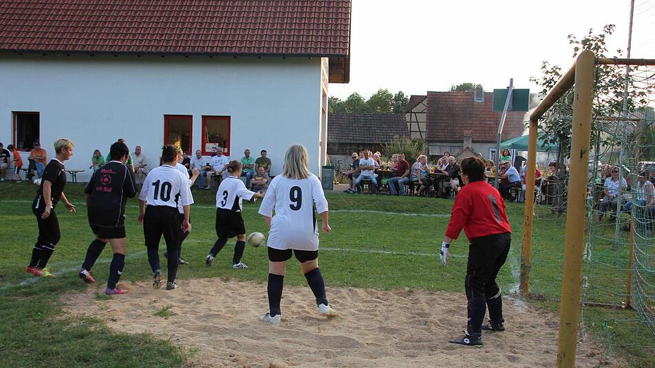 Im Eberner Stadtteil Eichelberg spielten zwei Damenteams gegeneinander. Die hatten sich Wochen lang darauf vorbereitet. Nach dem Sieg der Rivalen aus Reutersbrunn im Vorjahr kam es diesmal zu einem gerechten Unentschieden, da sich die Torhüterinnen auf beiden Seiten mehrfach auszeichnen mussten.