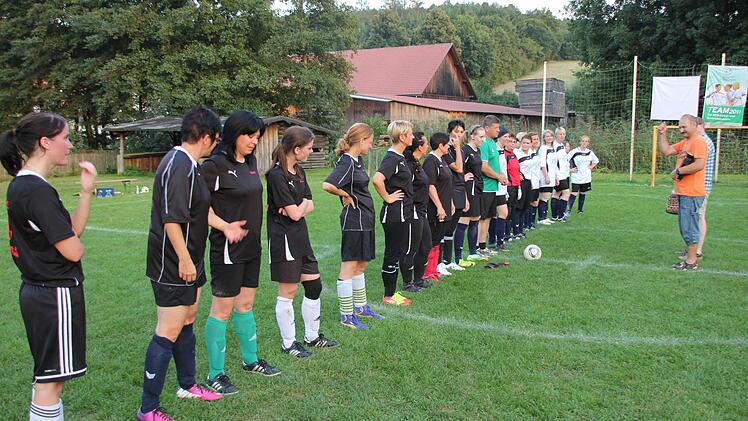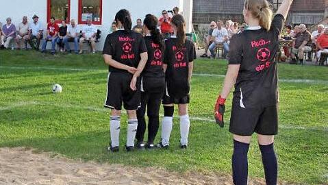 Beim Brunnenfest des Obst- und Gartenbauvereins Eichelberg wurde kräftig "eingeschenkt": Jeweils drei Tore erzielten die Damenmannschaften aus Eichelberg und Reutersbrunn beim Gaudispiel am Samstagabend. Fünf Wochen lang hatten sich beide Teams an mehreren Trainingsabenden auf dieses Derby vorbereitet. Und die taktische Finesse dabei: "Den Ball möglichst weit weg vom Tor weghalten", wie Andreas Leibold, einer der Reutersbrunner Betreuer, verriet.