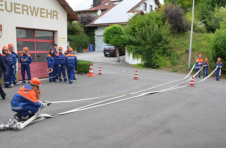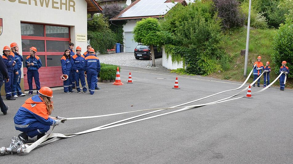 Alle zwei Jahre findet eine solche Orientierungsfahrt statt. Und an den Stationen gab es so nette Herausforderungen wie das Zählen der Fenster oder Treppenstufen an Schlössern oder das Auffinden eines bestimmten Zeichens an einer Wanderkarte. In Weisbrunn bei Eltmann flogen die Wasserbomben, in Prappach musste man Geschicklichkeit beim Schlauchflechten unter Beweis stellen, in Gemeinfeld wartete das "Waldbrandpatschen-Spiel", und in Pfarrweisach drehte es sich um Gummibärchen, die man mit dem Mund aus einer mit Wasser gefüllten Schüssel zu fischen hatte. Fünf Jugendliche hatte eine Gruppe.