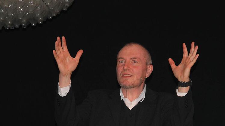 Im Klenzesaal hätte man ein Streichholz fallen hören, so gefasst gingen die Besucher die Erzählung mit. Markus Grimm wechselte gekonnt zwischen den verschiedenen Rollen hin und her. Über allem schwebte der Sternenhimmel an der Decke des Klenzesaals...