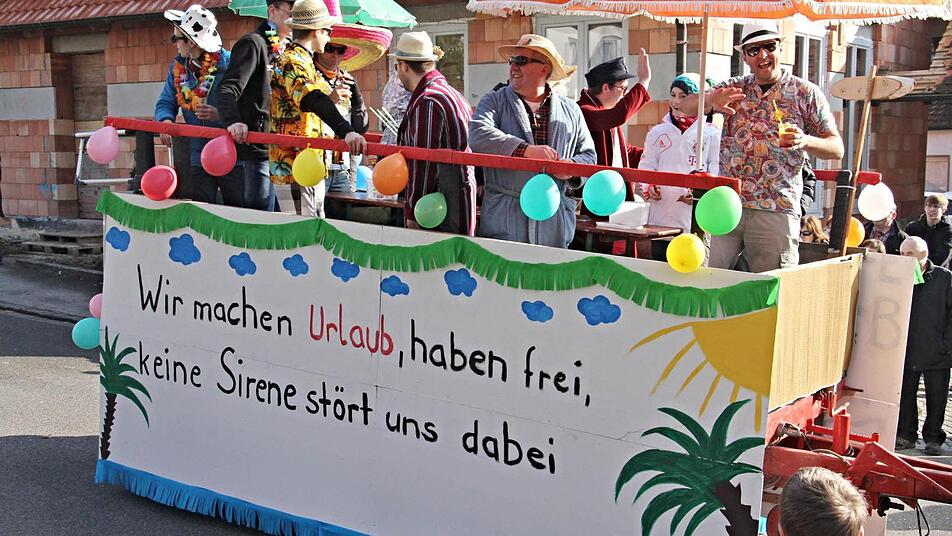 Der Gesangverein pries beim Umzug die Stimme als ältestes Instrument an, die BRK-Bereitschaft ging mit Angeln auf Mitgliederfang und die Untermerzbacher Feuerwehr nahm sich einen Tag frei.