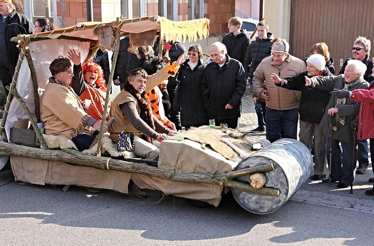 Die Gemeinde an der Alster zeigte sich am Sonntagnachmittag närrisch. Wagen und Gruppen schlängelten sich als bunter Gaudiwurm, angeführt von "Napoleon" (Bürgermeister Helmut Dietz) und den Gemeinderäten Birgit Finzel und Martin Mölter, vom nordöstlichen Ortseingang kommend durch den Ort. Knapp 300 Zuschauer säumten die Straßen, um unter Klängen der Blaskapelle Gereuth zu schunkeln.