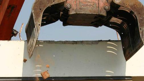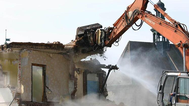 Brütende Schwalben hatten dem alten Bahnhofsgebäude in Ebern noch eine Gnadenfrist verschafft, doch binnen zweier Tage   hat die Bamberger Baufirma Metzner das 116 Jahre Gebäude und die nebenstehende Halle der Firma Buss jetzt komplett abgerissen.