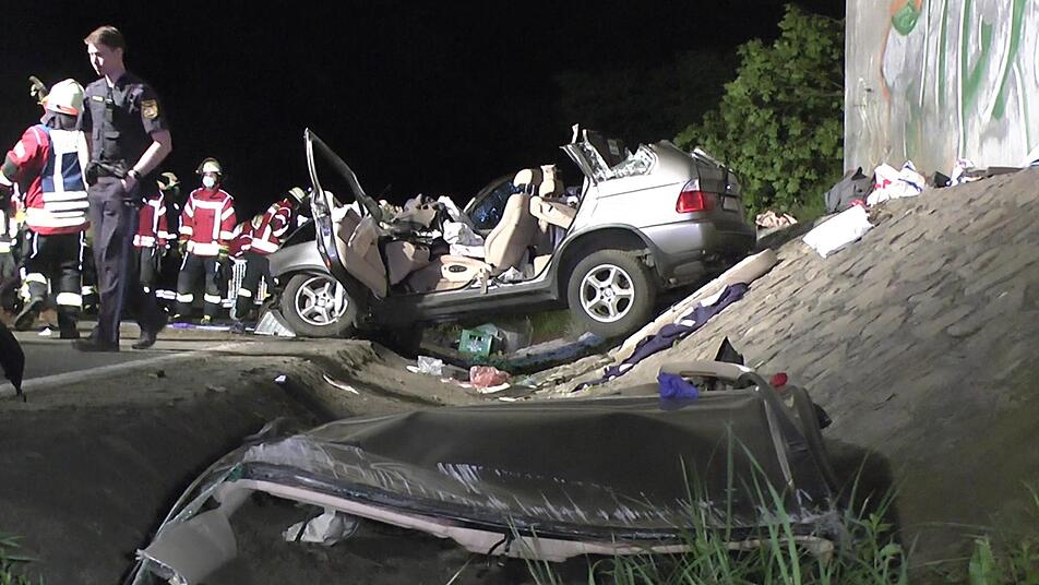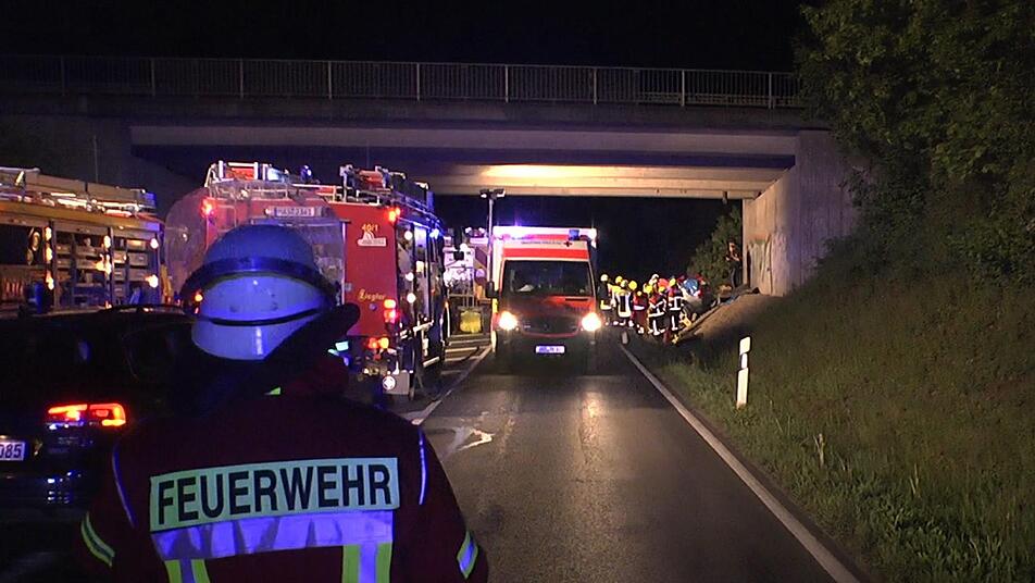 Gegen 0.10 Uhr ging ein Notruf bei der Integrierten Leitstelle Schweinfurt (ILS) ein, die wiederum sofort die Feuerwehren aus Knetzgau und Sand alarmierte, die mit über 50 Mann anrückten. Ein 61-jähriger Mann hatte mit seinem BMW den Autobahnzubringer in Richtung Haßfurt befahren, als er offenbar nach rechts von der Fahrbahn abkam. Dort zerlegte er regelrecht einen großen Wegweiser, ehe er dort abprallte und die Böschung auf der gegenüberliegenden Fahrbahnseite hinauf fuhr. Ein Baum, der dem Auto im Wege stand, wurde entwurzelt und geteilt. Für das Fahrzeug, das im Landkreis Konstanz zugelassen ist, endete die Schleuderfahrt unter der Straßenbrücke kurz vor der Ausfahrt Knetzgau. Der BMW prallte an den dortigen Brückenpfeiler. Auf der ganzen Straße verteilten sich die Trümmerteile.