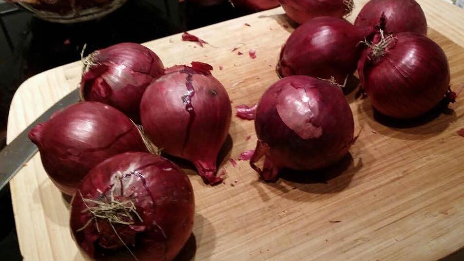 7 rote Zwiebeln - klein schneiden;