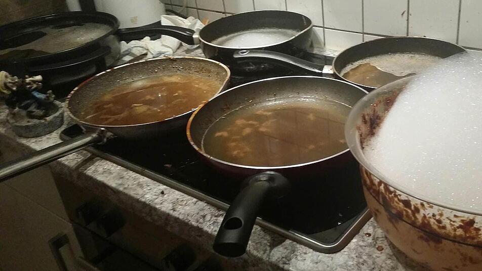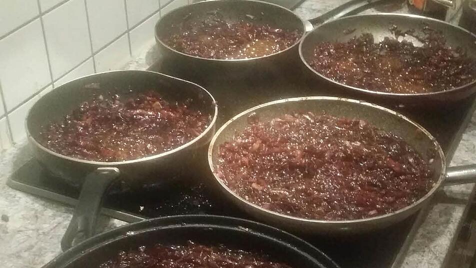 Mitten in der Nacht brummt Whatsapp: Aha, der Speck ist geschnitten (21.11 Uhr).... und die 30 Zwiebeln auch (21.31)... dann Stille, Gute Nacht.